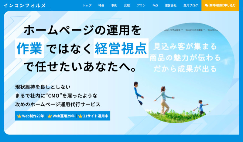 ホームページの運用が作業だけになってしまっている中小企業に、“CMO”を雇ったような攻めのホームページ運用代行サービスを提供する。 - Webサイト